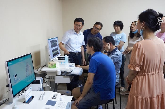 公司領導對專家們蒞臨指導表示熱烈歡迎,研發工程師為專家們介紹了南京科進的TCD儀及產品的臨床應用,并作了現場操作演示,對有關技術問題進行了深入探討。