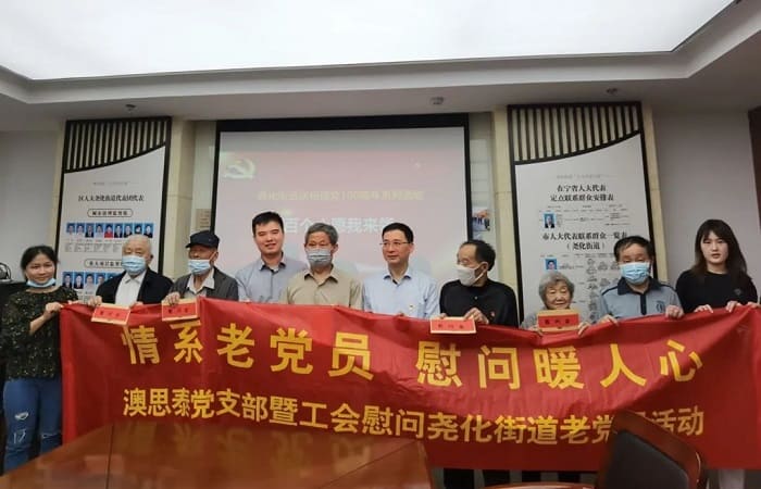 “情系老黨員,慰問暖人心”。2021年5月28日,中共澳思泰黨支部書記俞政君帶領(lǐng)公司黨員和干部慰問了堯化街道部分老黨員,這是在慶祝建黨100周年之際,公司黨支部開展黨史學(xué)習(xí)教育系列活動之一,旨在關(guān)心老同志,學(xué)習(xí)老黨員,交流學(xué)習(xí)心得,傳承紅色傳統(tǒng),弘揚革命精神。