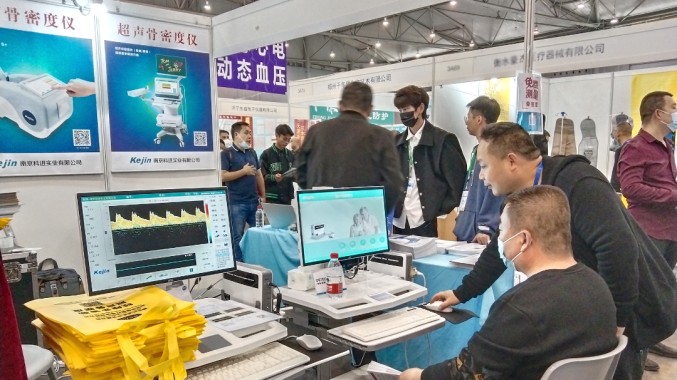 成都/南寧兩地展會同步展覽中,南京科進攜帶超聲骨密度儀、超聲經顱多普勒等多款實力產品,安排產品經理及專業技術人員為大家介紹產品、答疑解惑,幫助客戶近距離感受產品溫度,免費進行親身體驗,科進展位區前匯集眾多前來咨詢的參展者。