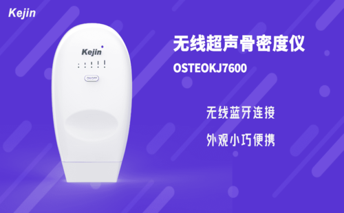 南京科進新推出的OSTEOKJ7600系列超聲骨密度儀,可測量橈骨、脛骨(除OSTEOKJ7600款),采用無線藍牙連接,外觀小巧便攜,檢測過程更靈活,適合兒童檢測。
