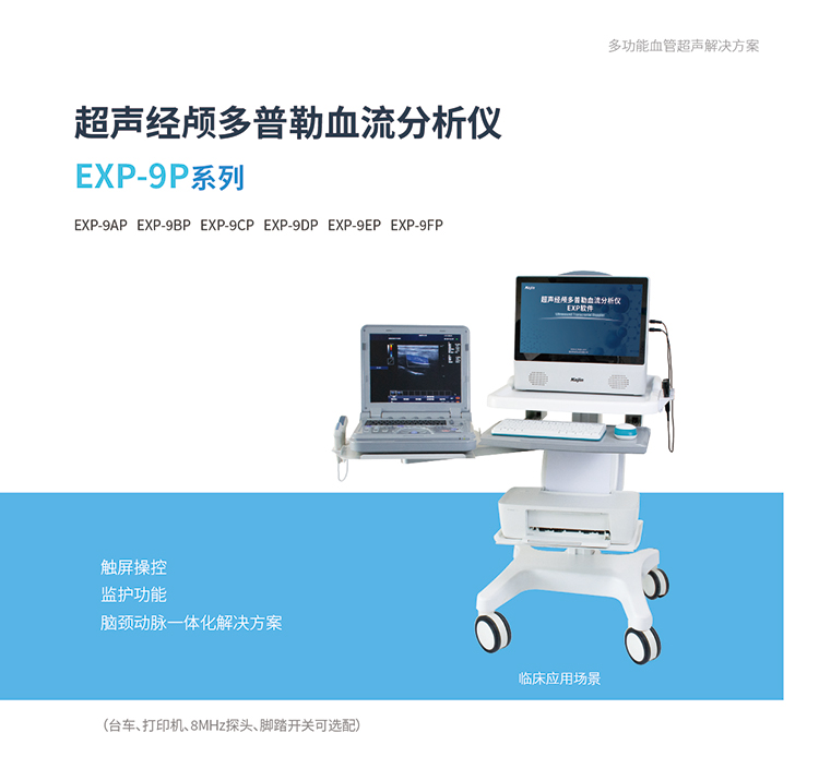 EXP-9P系列超聲經顱多普勒血流分析儀是科進推出的九深度TCD儀便攜型解決方案,利用脈沖超聲波穿透顱骨的薄弱部位,對顱內腦血管的血流進行檢測,還可以采用連續超聲波對淺表血管內的血流進行檢測,能夠定量地評價腦血管和淺表血管的供血狀態,可進行栓子檢測、發泡試驗,為診斷各種腦血管病變的性質、程度和范圍提供依據。